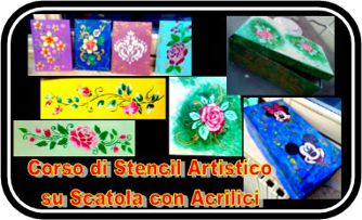 Ogni allievo decorerà una scatola di scarpe, portata da casa, con un fondo pittorico artistico multicolore e con stencil particolari.
